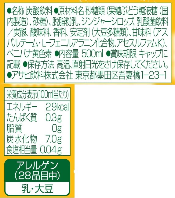 ・カルピスソーダ ジンジャエール 500ml×24本(賞味期限:2023/05/31) - 賞味期限