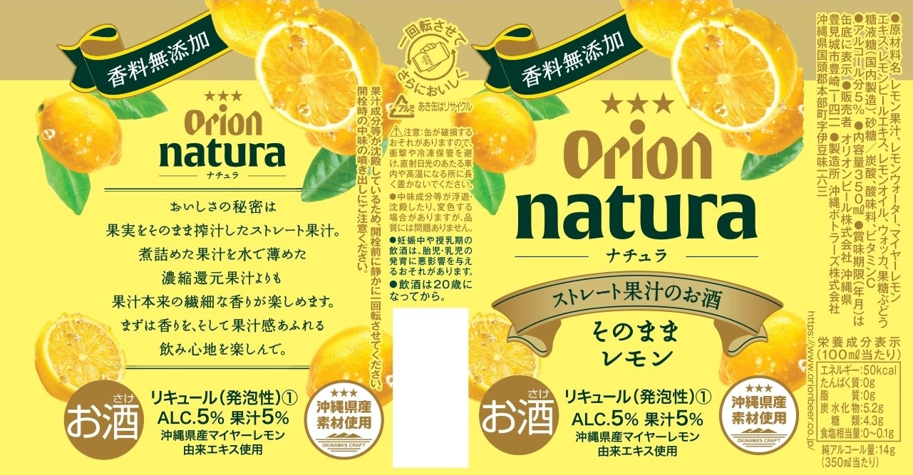 [72本]オリオンビール natura そのままレモン 350ml | レモンのストレート果汁を使うことにより果実そのままの美味しさを活かしました