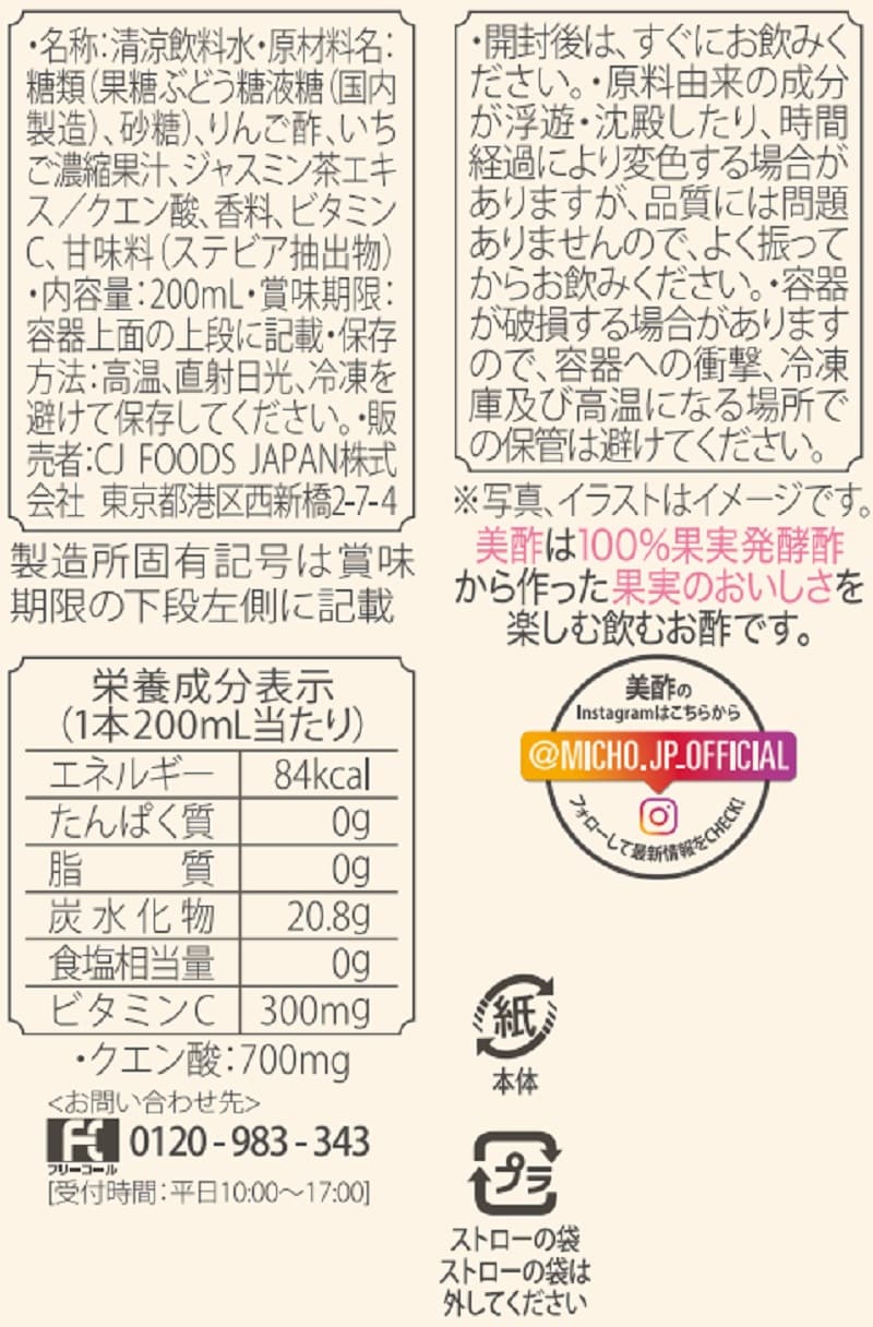 [96本]CJ FOODS JAPAN 美酢ビューティータイム いちご&ジャスミン 200mL | 果実のお酢をTEAブレンディングした新感覚ティー