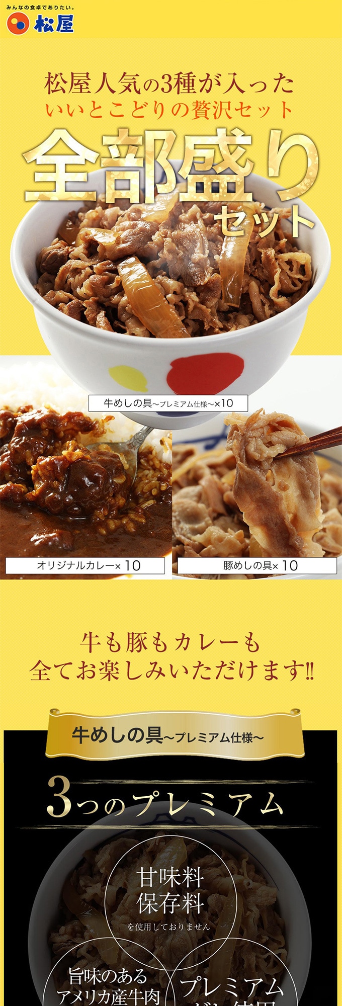 - 【松屋/3種類計20食】全部盛り20個(プレミアム仕様牛めし...