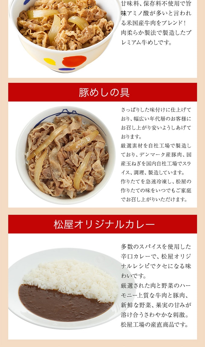 - 【松屋/3種類計30食】全部盛り30個(プレミアム仕様牛めしの具&豚めしの具&オリジナルカレー)